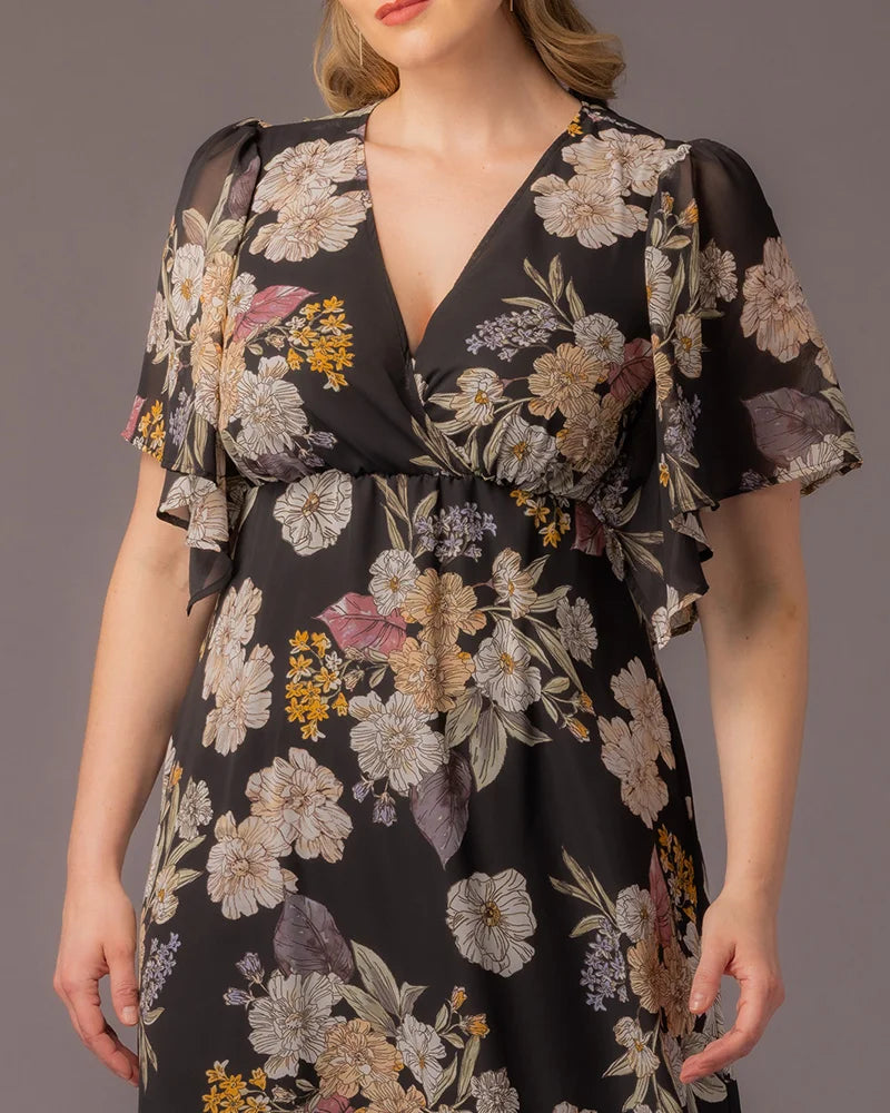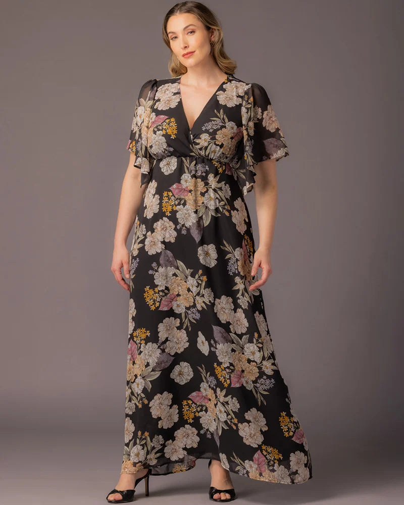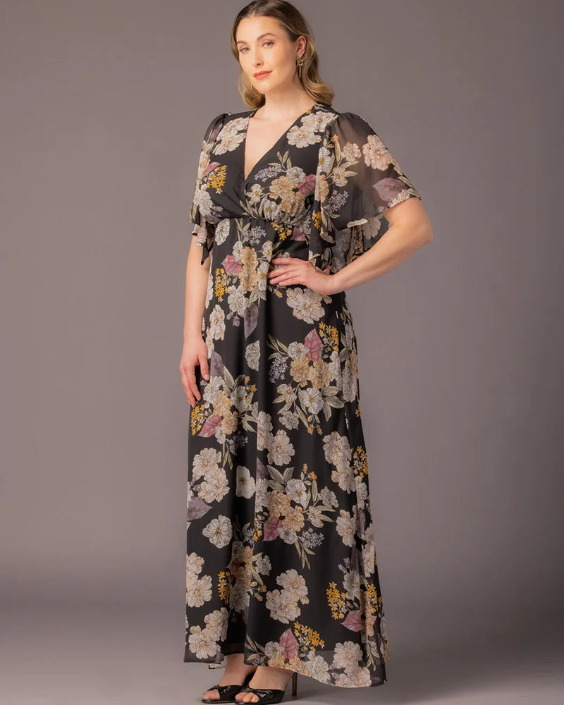 Epitomize understated elegance and look as pretty as a picture in the Carmella Evening Gown Gown. This floor-length, plus-size dress is crafted from a beautifully swiss dot chiffon fabric that flows effortlessly with every step. A surplice neckline with subtle gathering at the bust adds soft structure, while elastic at the waist enhances your natural shape. Delicate flutter sleeves complete the romantic look. Made exclusively in women’s plus sizes.