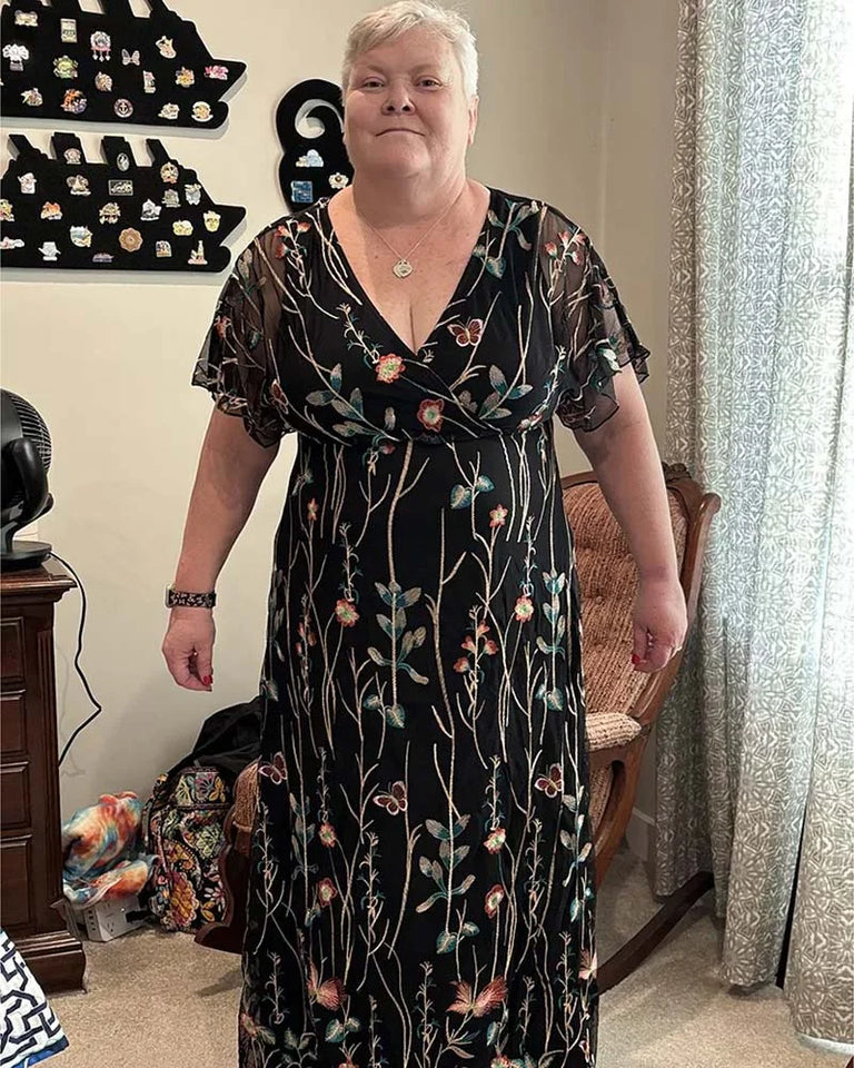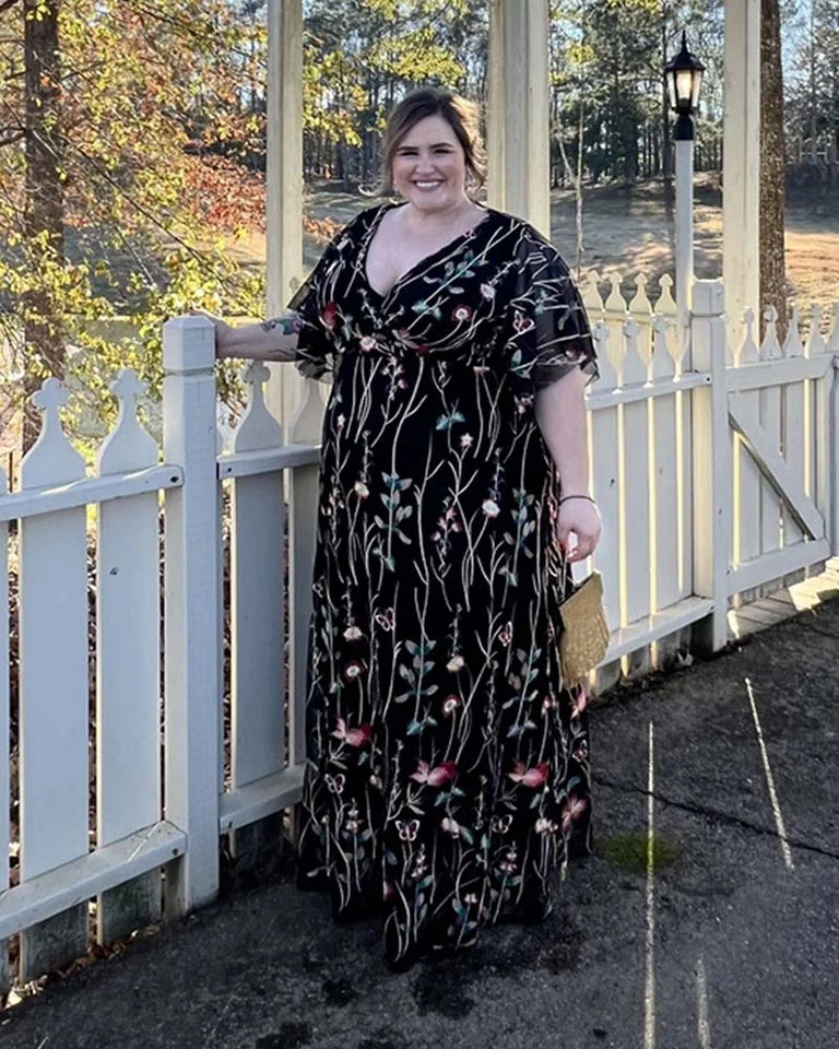 Our Embroidered Elegance Evening Gown is an ethereal style crafted to evoke compliments at your next special occasion. This stunning plus size formal dress features floral mesh embroidery, a lined bodice and skirt, flutter sleeves and an empire waist. This elegant floor-length maxi dress is perfect for black-tie affairs, formal events, cocktail parties, as a ball-gown, and the perfect wedding guest (destination favorite) or mother of the bride / groom gown.