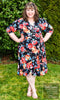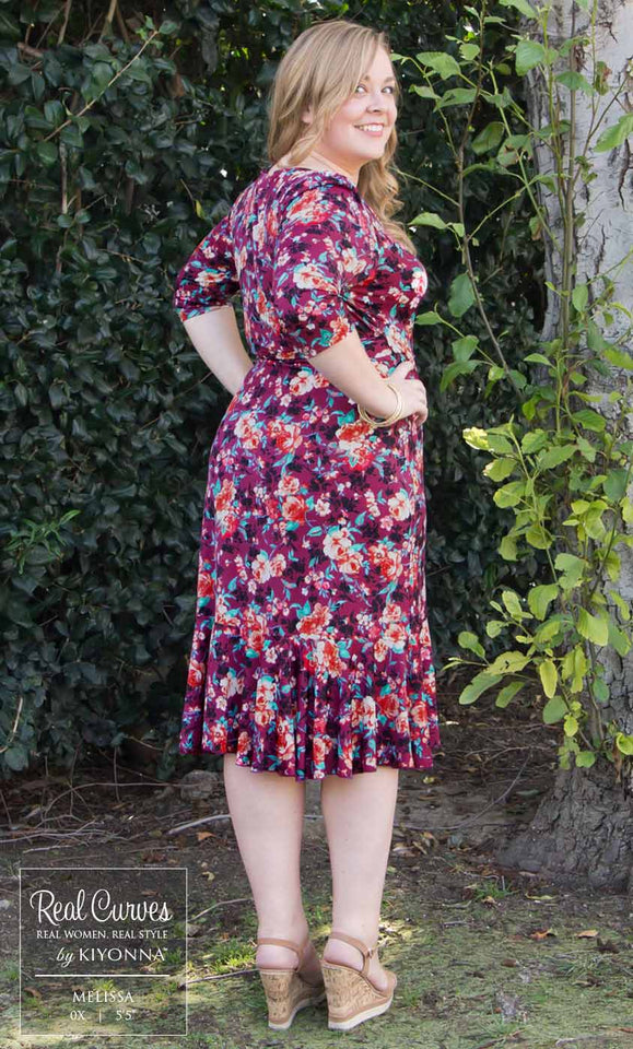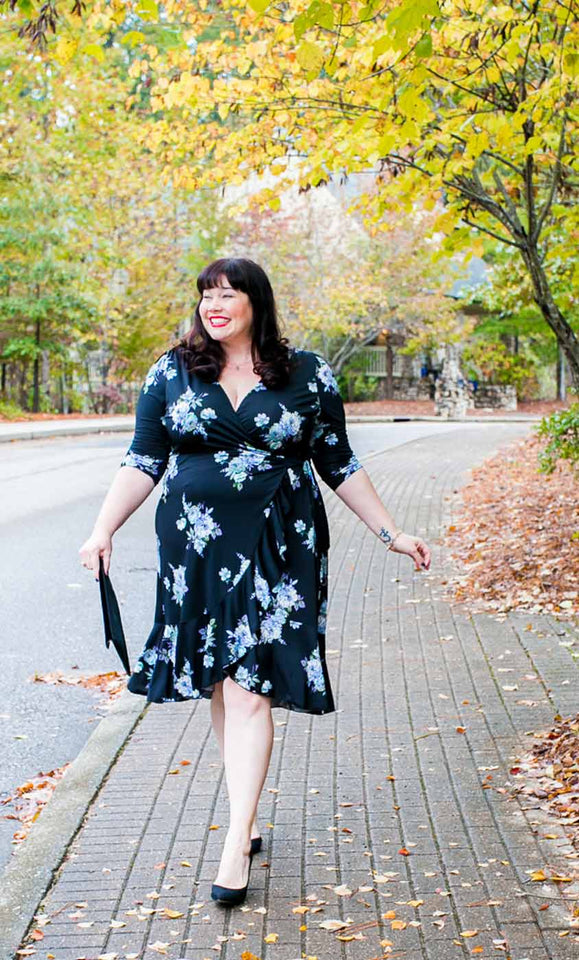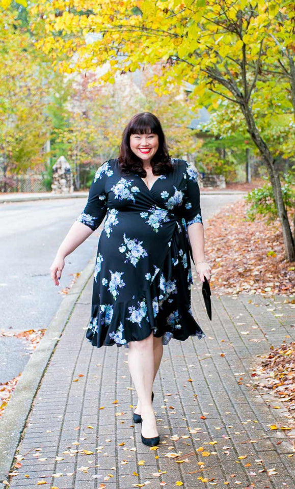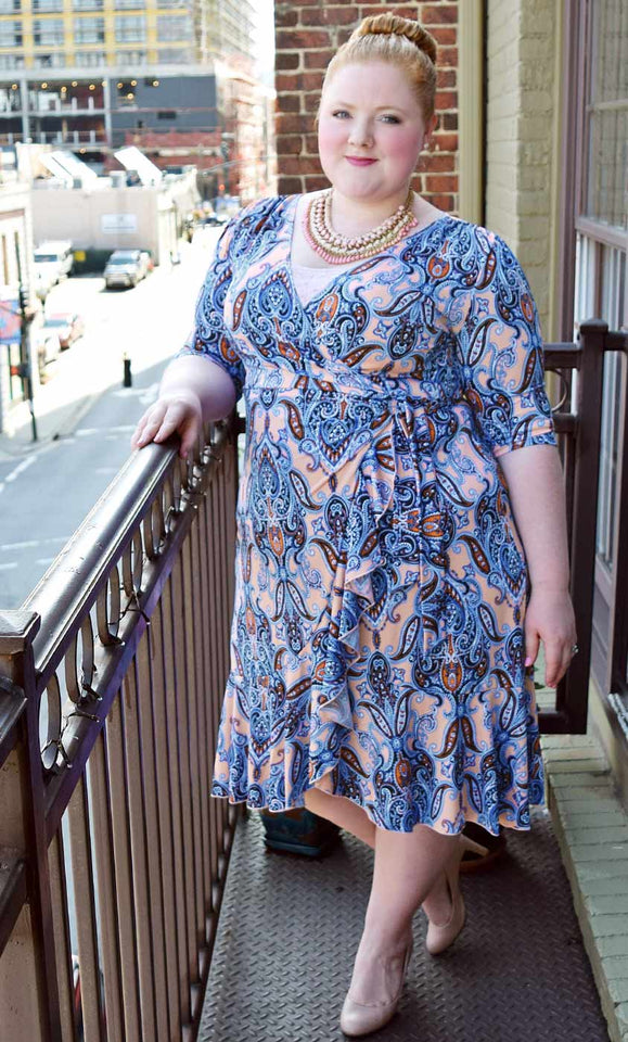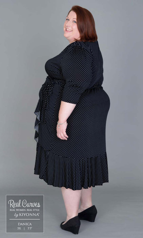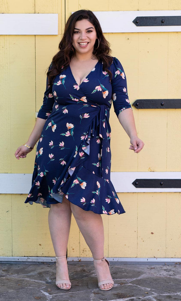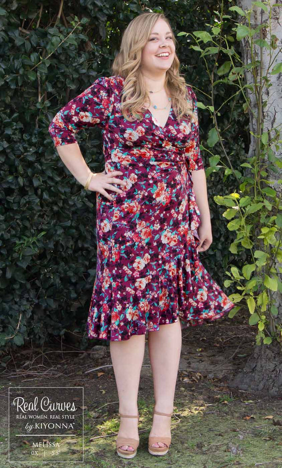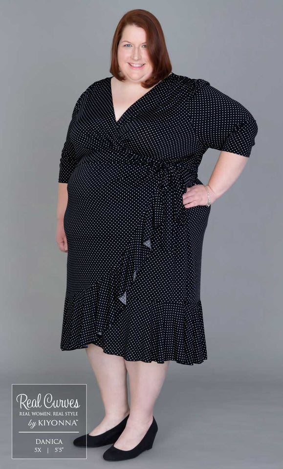 Exude playfulness with fun prints. Our Flirty Flounce Wrap Dress is designed with gorgeous cascading ruffles along the skirt's front panels and bottom hem. This fully functional plus size wrap dress is fantastic for adjusting to your preferred coverage and the cinch feature at the waist helps accentuate your fabulous curves. Wear to work or for a night out! This Kiyonna wrap dress is available exclusively in women’s plus sizes.