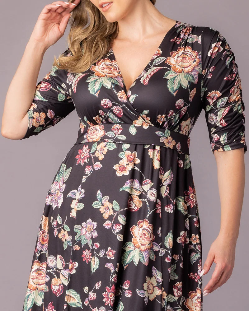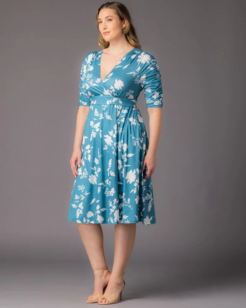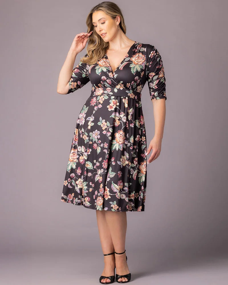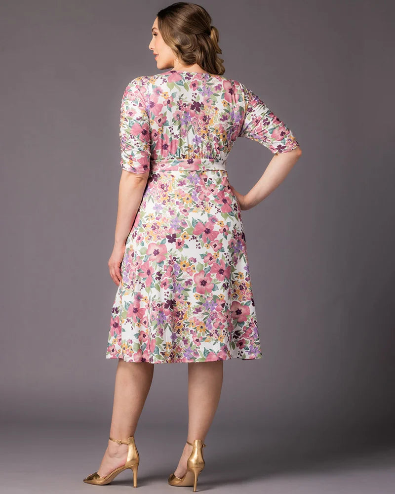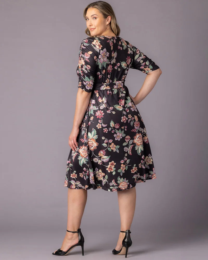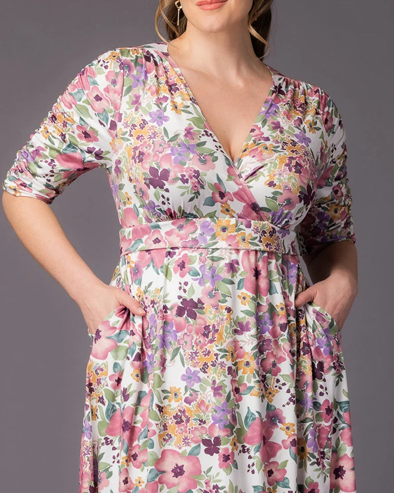 You'll feel beautiful in our retro-inspired Gabriella Dress. This flattering plus size A-line dress is designed with a surplice bodice and fully-lined skirt that will keep you both comfortable and stylish. Soft and thick jersey fabric fits beautifully without clinging. A playful print will put a pep in your step wherever you go. One last great detail about this dress? It's a jersey dress with pockets! Made exclusively in women's plus sizes.