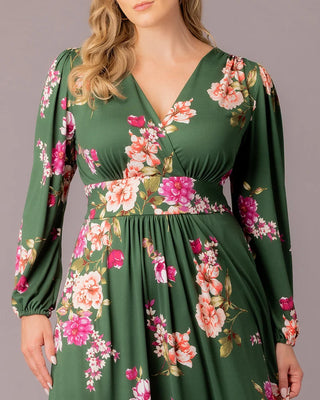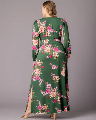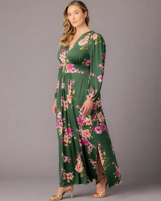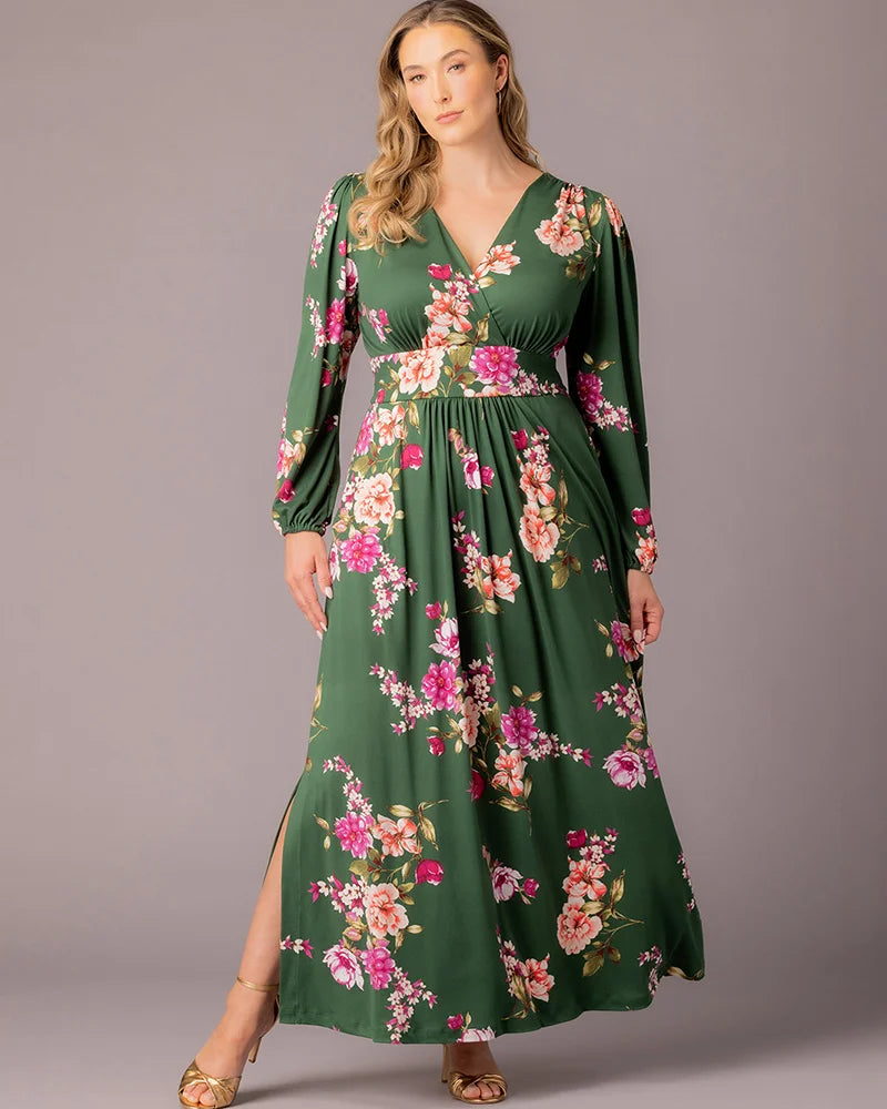 The Kelsey Long Sleeve Maxi Dress exudes sophistication. This curve-flattering maxi dress marries style and comfort in a soft yet substantial stretch jersey fabric. An elegant fall addition, it features an empire waist, flowing A-line skirt, flattering V-neck, long cuffed sleeves and side slits for movement. The Kelsey effortlessly transitions from a casual style to a refined look suitable for semi-formal occasions, making it the ideal option for a flawless wedding guest outfit. Designed exclusively for curvy figures in plus sizes (0x,1x,2x,3x,4x,5x, 12,14,16,18,20,22,24,26,28,30 and 32).