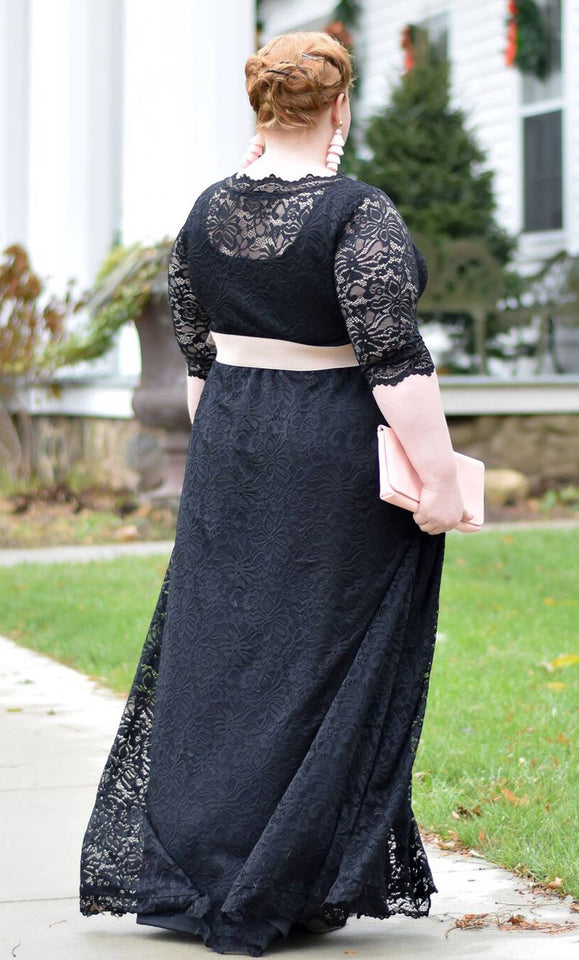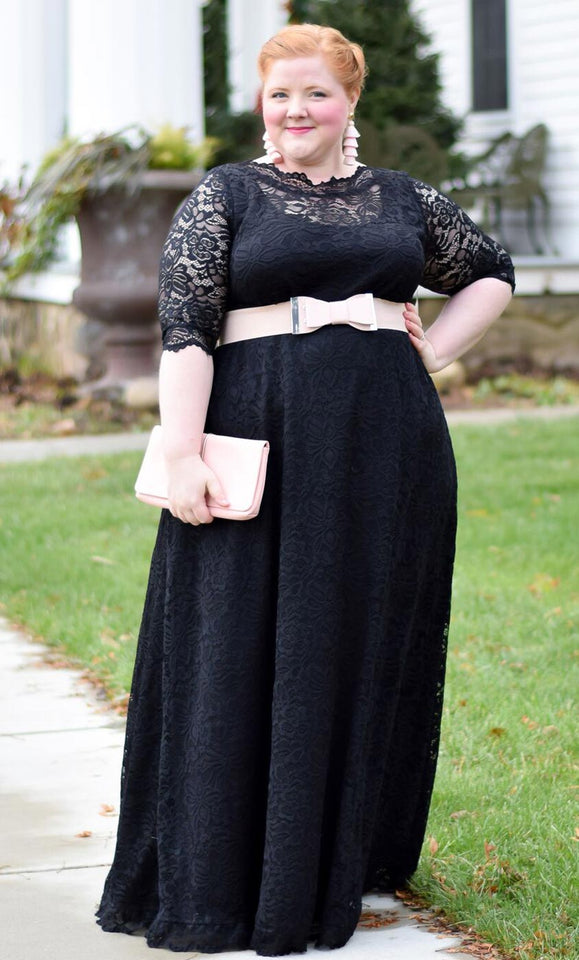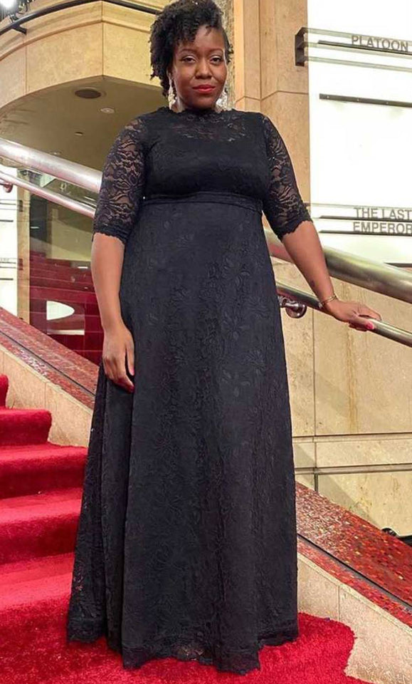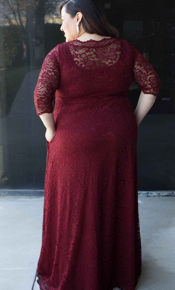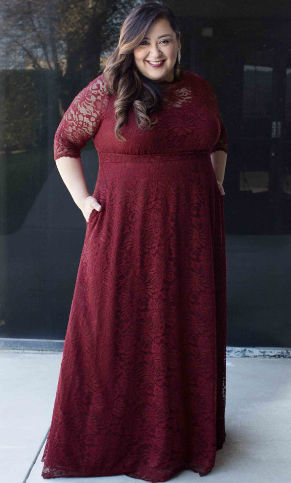 Dressing for a special occasion has never been this easy. Our Leona Lace Gown is timeless and ideal for weddings, anniversary celebrations and galas. Designed from a soft scalloped stretch lace, this comfortable pull-over gown features 3/4 length sleeves, an illusion boat neck neckline and an A-line silhouette to flatter your curves and make you feel beautiful. Here's a bonus if you enjoy traveling light. This lovely plus size evening gown has pockets! Made exclusively in women's plus sizes.