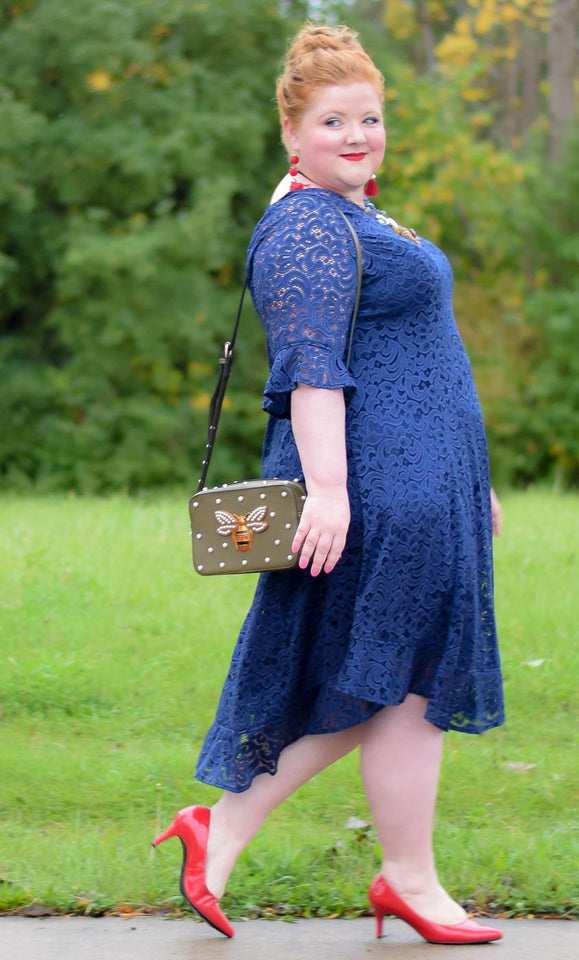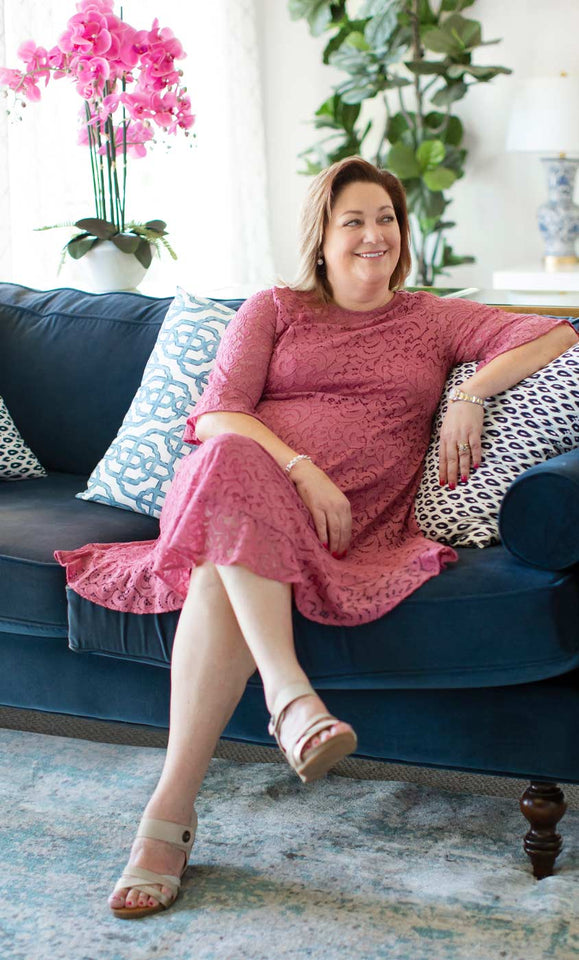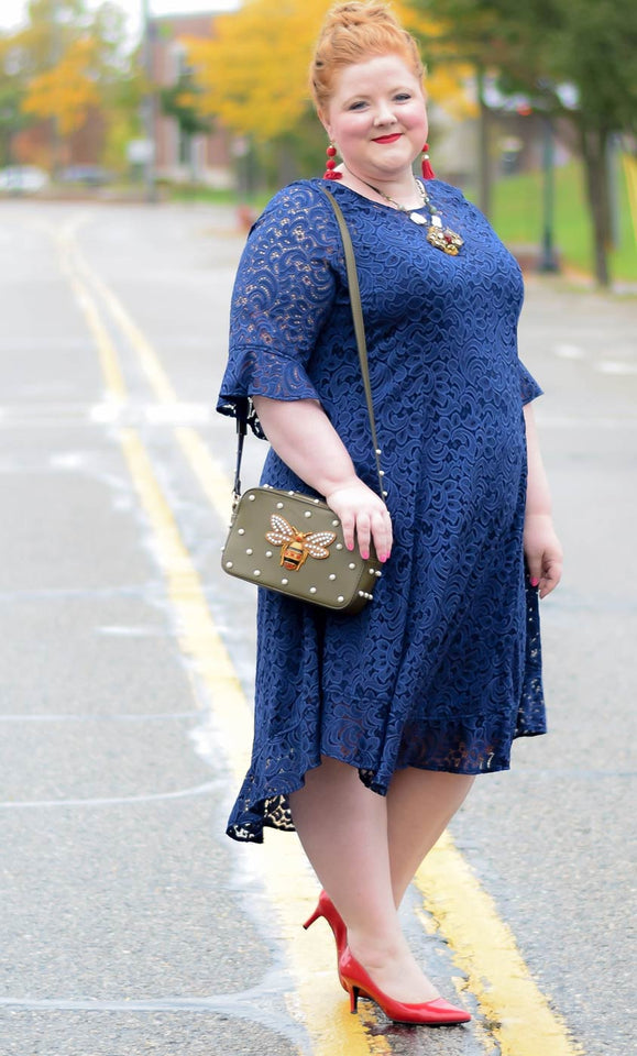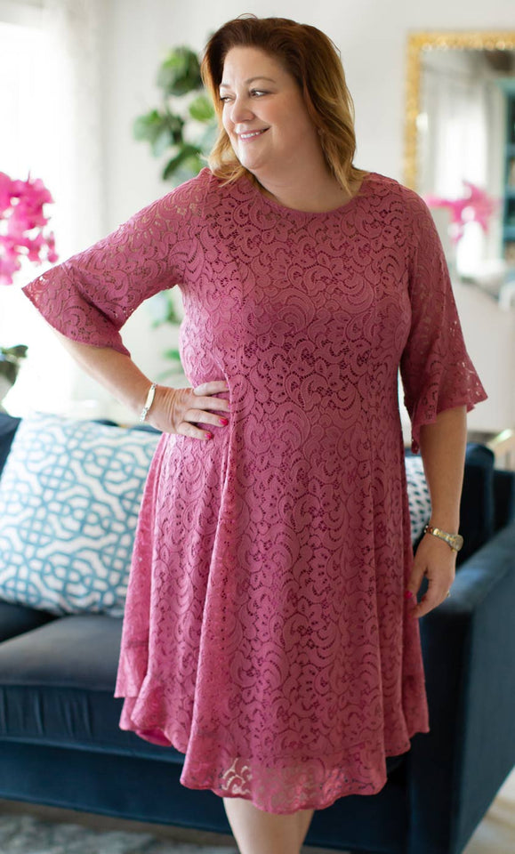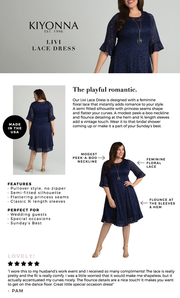 Our plus size princess seam dress is designed with a feminine floral lace that instantly adds romance to your style. A semi-fitted silhouette with princess seams shape and flatter your curves. A modest peek-a-boo neckline, detailing at the hem, and 3/4 length add a vintage touch to the flounce sleeve dress. Wear it to that bridal shower coming up or make it a part of your Sunday's best. Made exclusively in women's plus sizes.