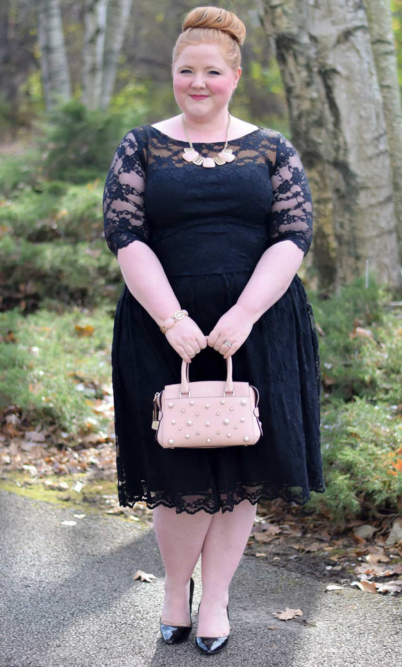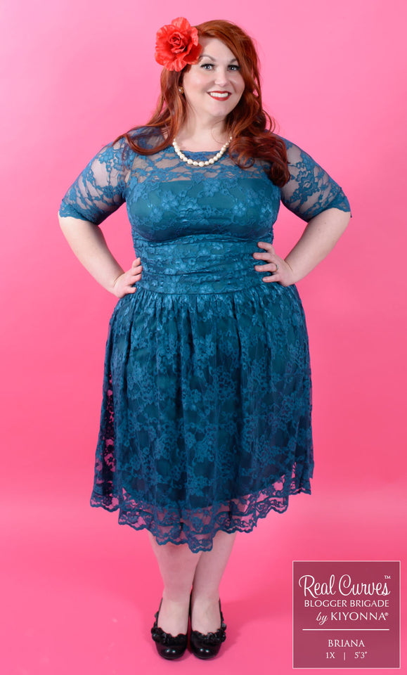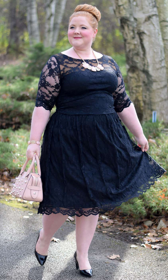 Our Luna Lace Dress ups the ante in women's plus size style! With scalloped lace and beige mesh backing to hide bra straps; you'll simply adore this stylish cocktail dress. A slightly full A-line skirt on this knee-length lace dress will give you a fabulous hourglass-like shape and is great for any special occasion. This lace overlay dress is available exclusively in women's plus sizes.