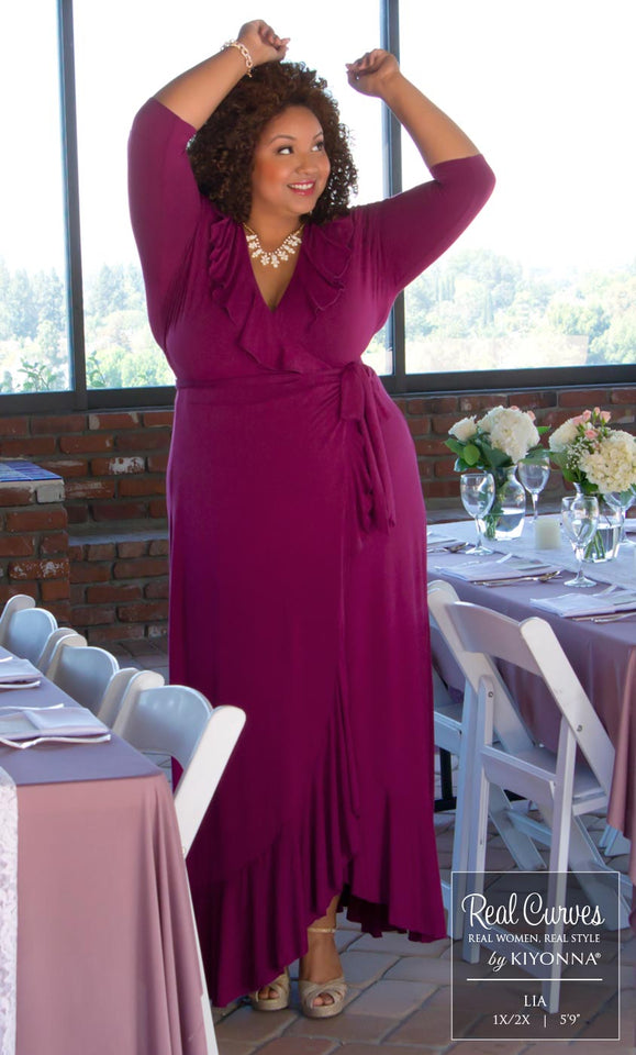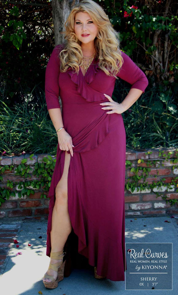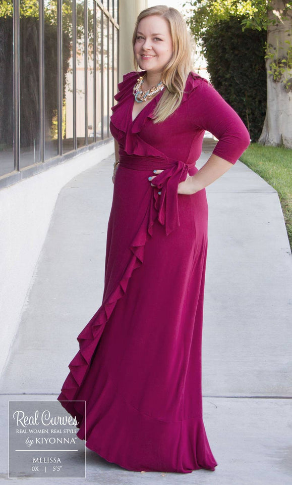 Get away to the coast in our Maritime Maxi Dress. Made out of a fluid jersey material, the ruffled neckline continues along the draped front and hem for a feminine and playful look. This easygoing, full-functioning wrap maxi is the perfect addition to your closet.