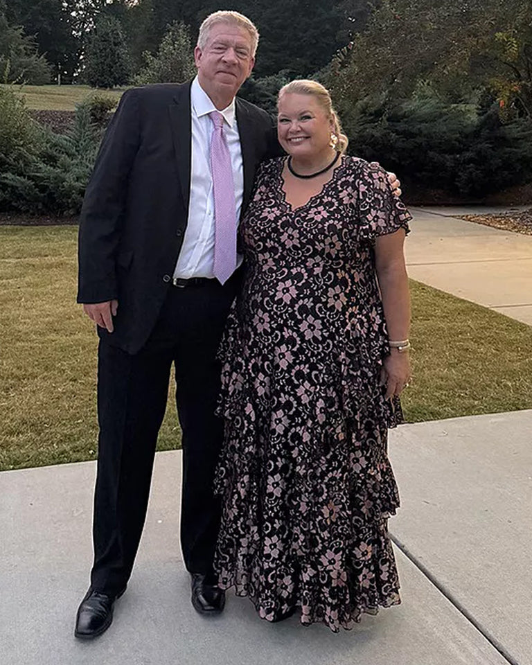 Make an unforgettable entrance in the Mon Ange Tiered Lace Evening Gown. Crafted in soft, two-tone stretch lace, this plus size floor-length gown features flattering tiers, flowy sleeves, and a scalloped lace detail at the neckline. Designed to flatter your curves, it’s a stunning choice for black tie events, galas, and any formal special occasion. Whether you're a wedding guest or the mother of the bride or groom, this elegant maxi dress brings timeless sophistication to every celebration.