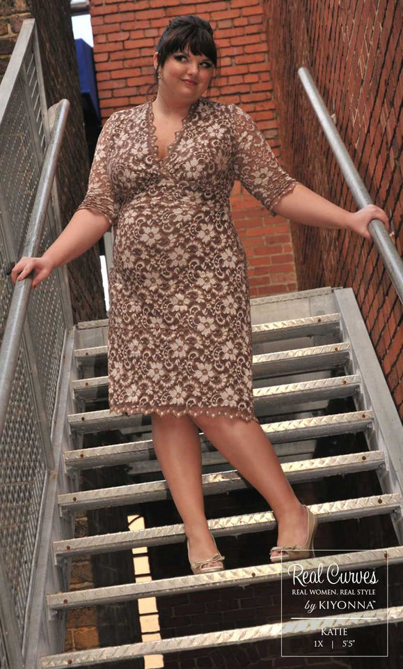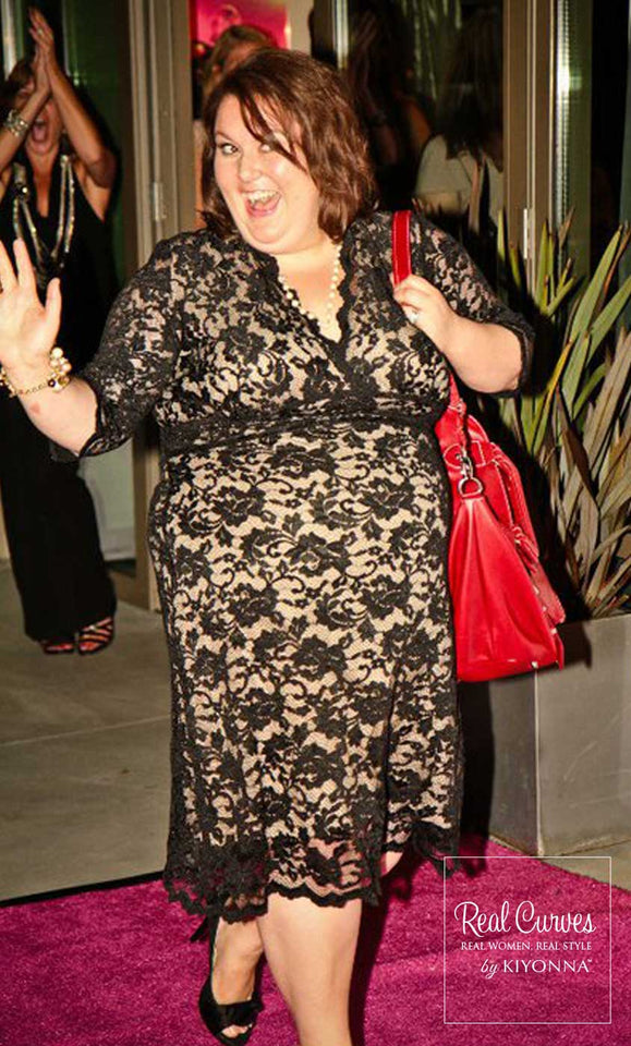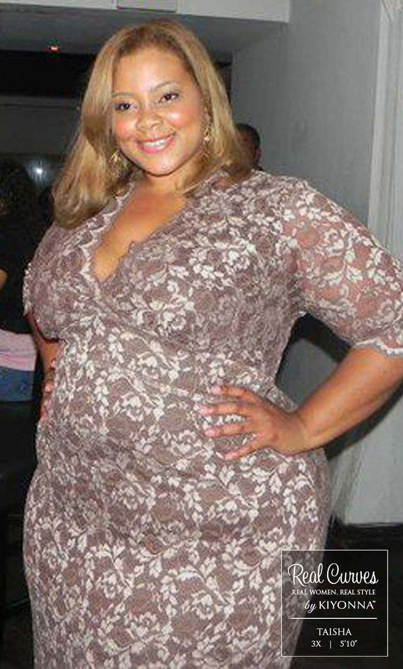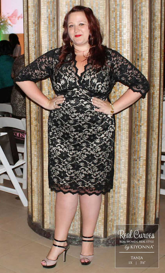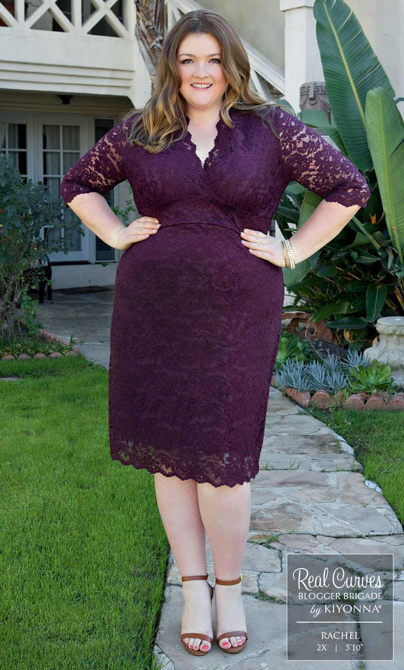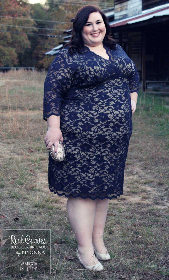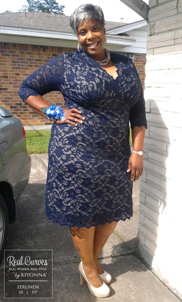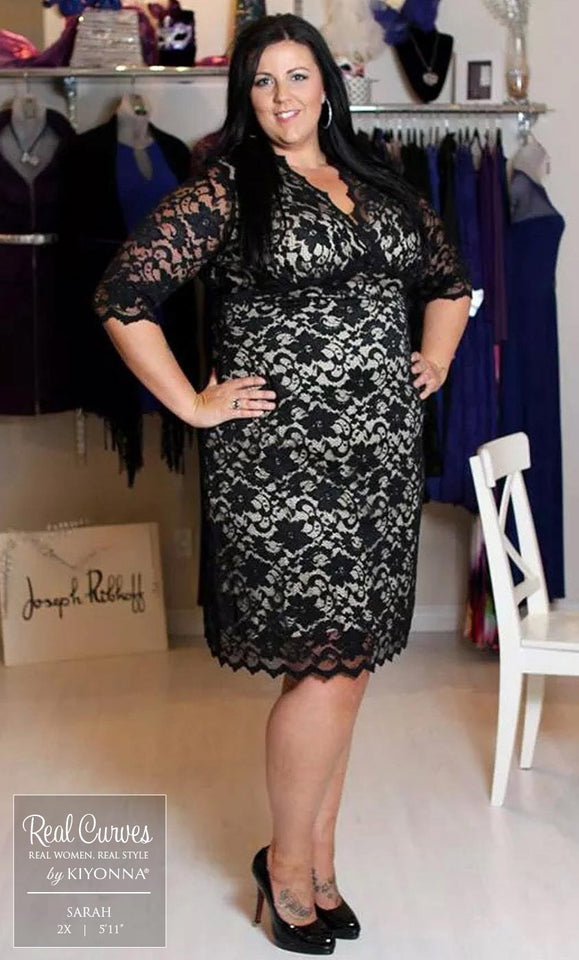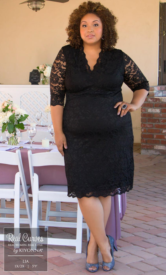 Expect to turn heads in our Scalloped Boudoir Lace Dress. This sexy and stylish special occasion dress is perfect for cocktail parties, weddings, or any formal or evening event. Our exquisite plus size lace dress is infused with stretch for a figure flattering fit and you'll love the classic curvy silhouette and midi length. Feminine 3/4 length scalloped sleeves and a v-neckline finish up this elegant style and add subtle sophistication. Available exclusively in women's plus sizes.