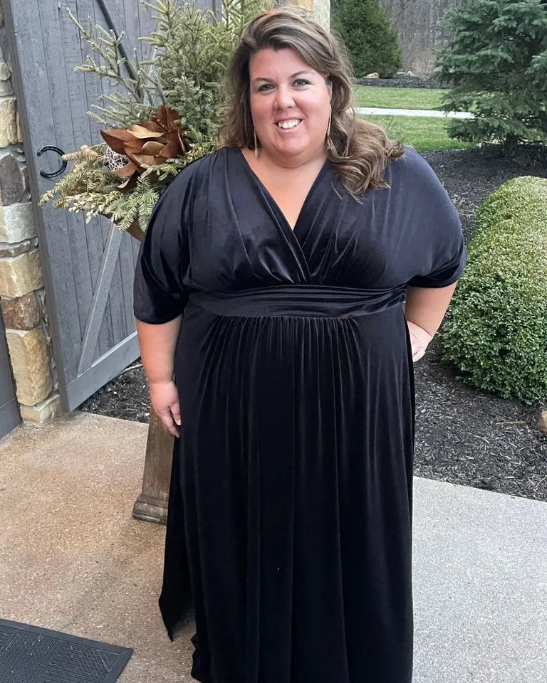 Ultra-luxe velvet illuminates this best-selling silhouette and makes for a glamourous edit to your wardrobe. Lush and saturated hues create drama while detailing like a flattering shirred waistband, dolman sleeves, side slits and pockets take this floor length dress to a different level.